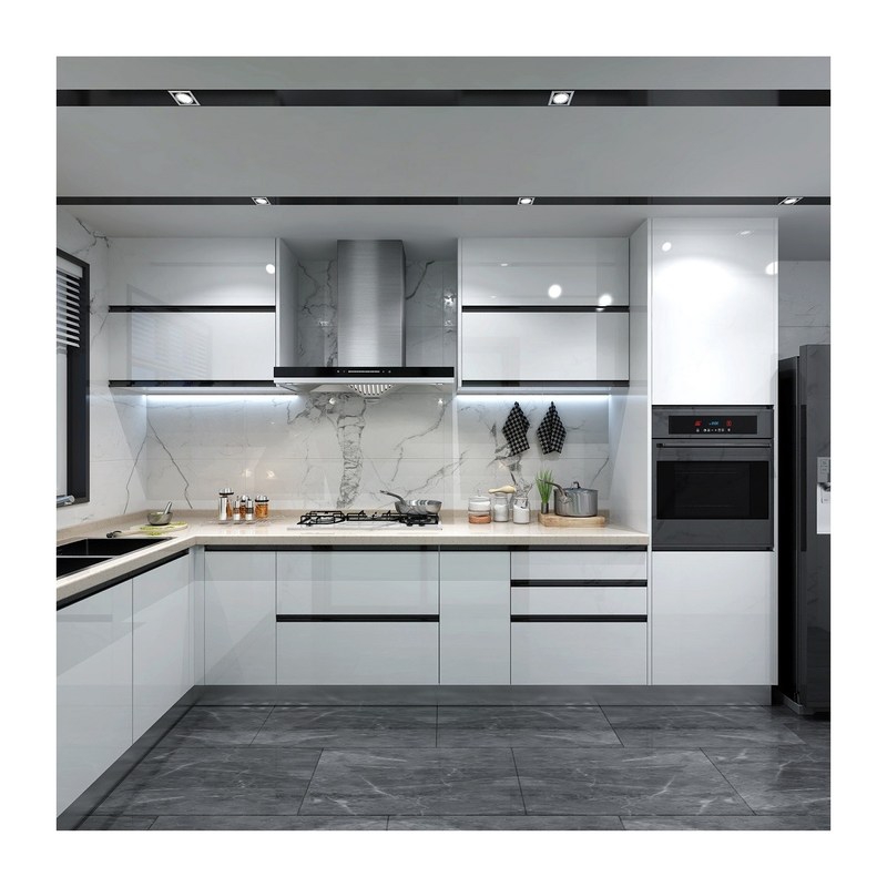 Option évier Taille personnalisée étanche à l'eau en carton de mélamine brillant Armoires de cuisine modulaires 29