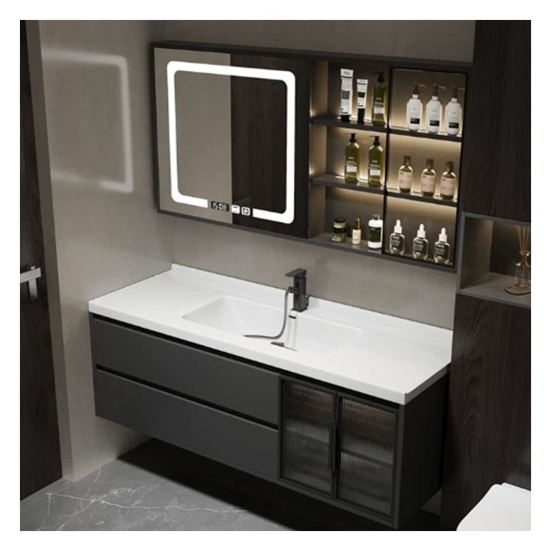Vanité de salle de bain avec une finition brillante personnalisée et un panneau de porte en laque 19
