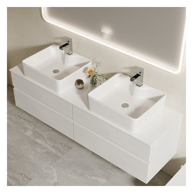 Vanité de salle de bain flottante blanche personnalisable avec plafond en marbre faux dans le style de design européen 21