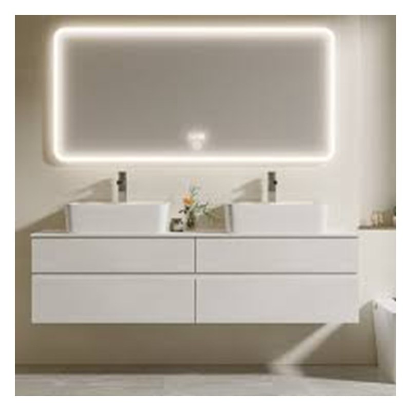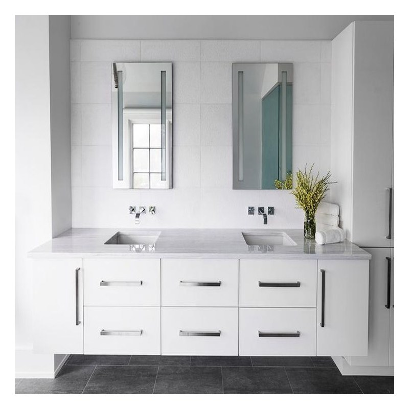 Vanité de salle de bain flottante blanche personnalisable avec plafond en marbre faux dans le style de design européen 18
