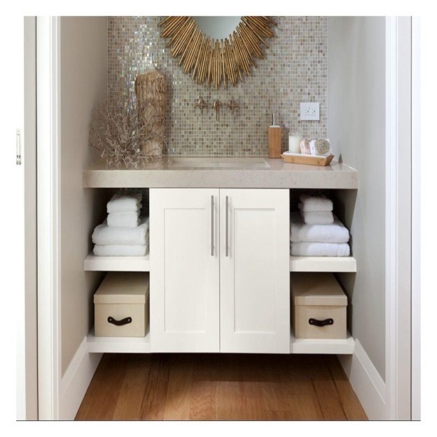 Vanité de salle de bain simple avec panneau de porte en laque blanche et construction en bois massif 17