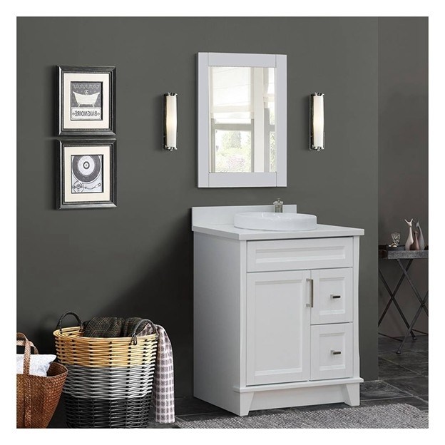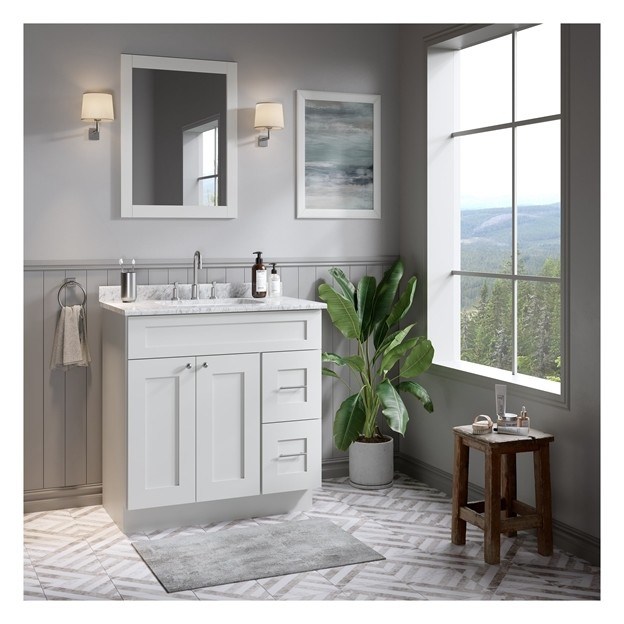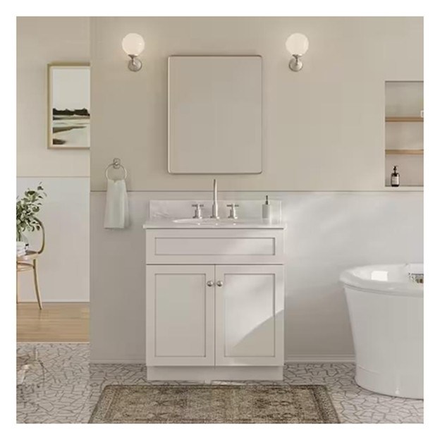 Vanité de salle de bain simple avec panneau de porte en laque blanche et construction en bois massif 27